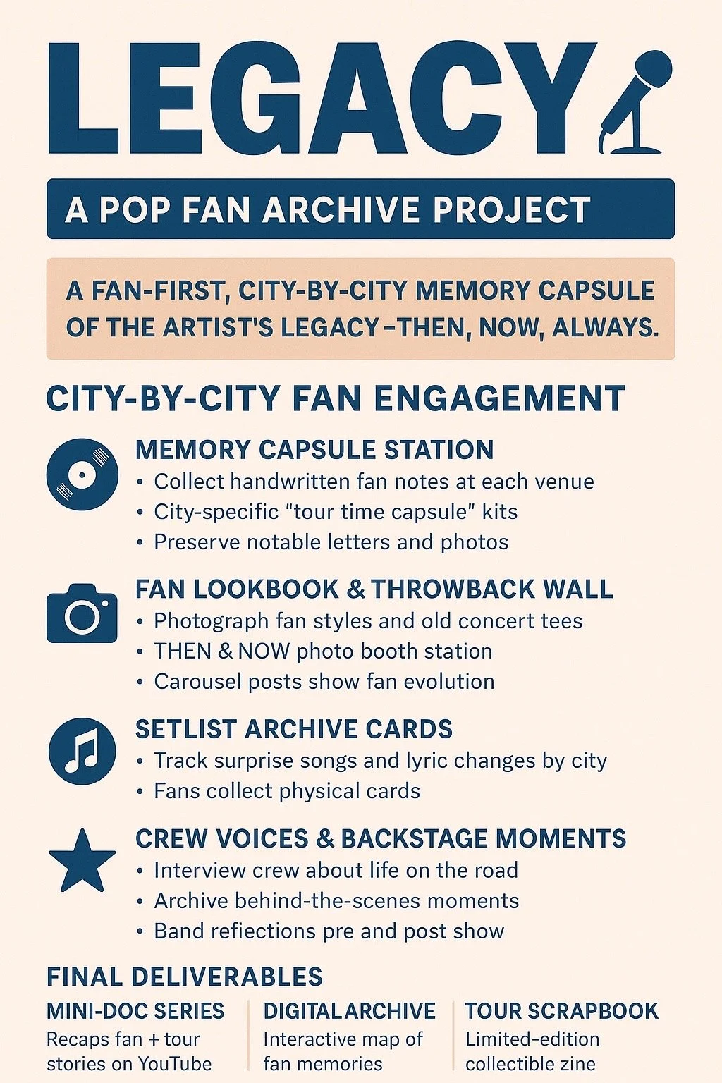 - Scrapbooks and memory boxes for tours, premieres, and anniversaries